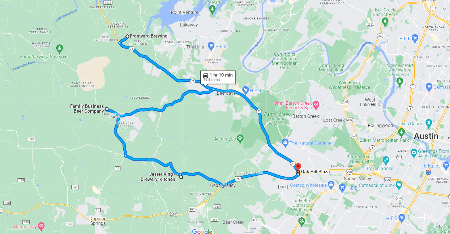 - Confirm Pick Up Location: The tour starts from the Oak Hill Plaza Shopping Mall (near the BoA ATM). 6919 1/2 State Hwy 71, Austin, TX 78736.